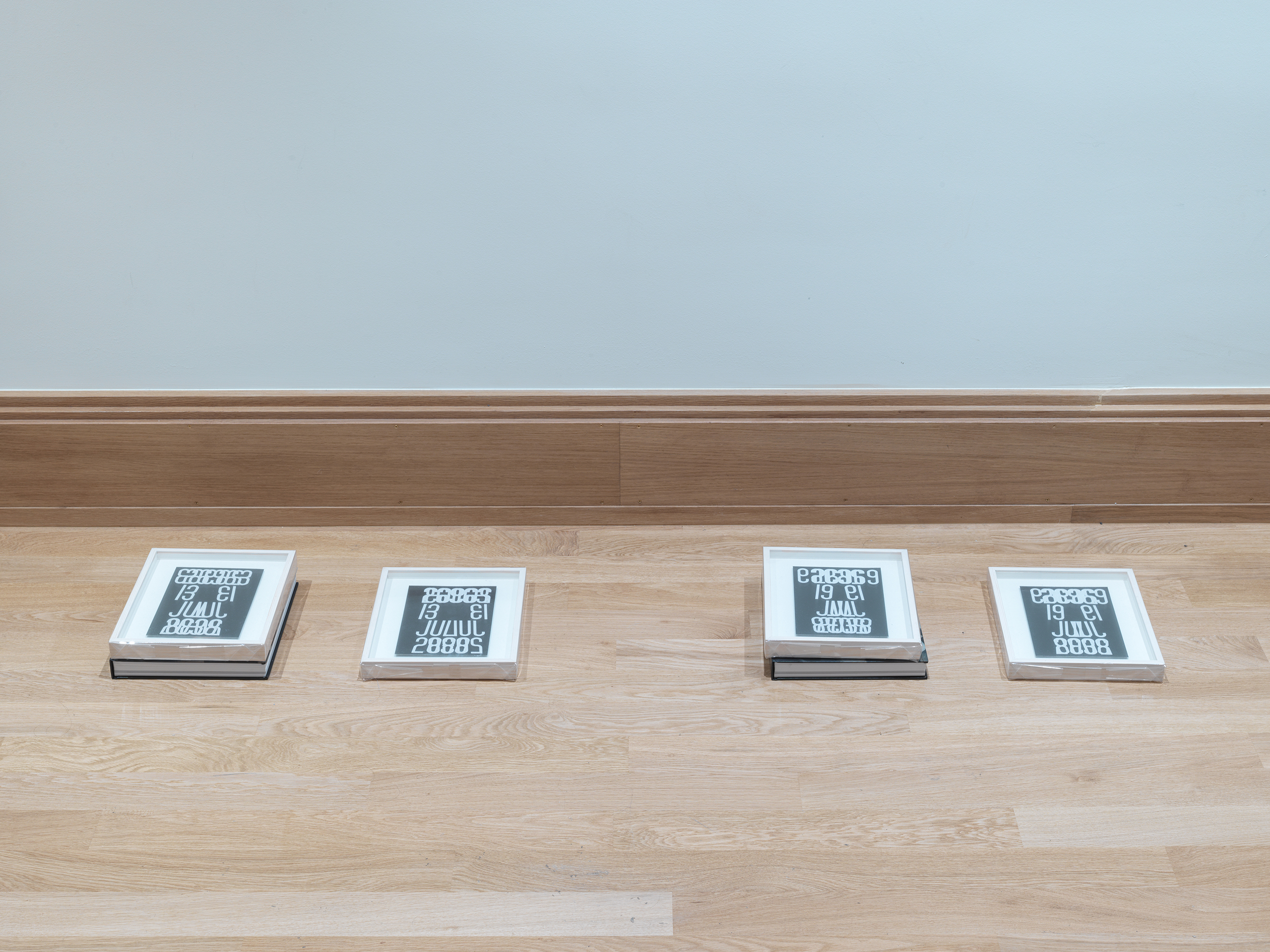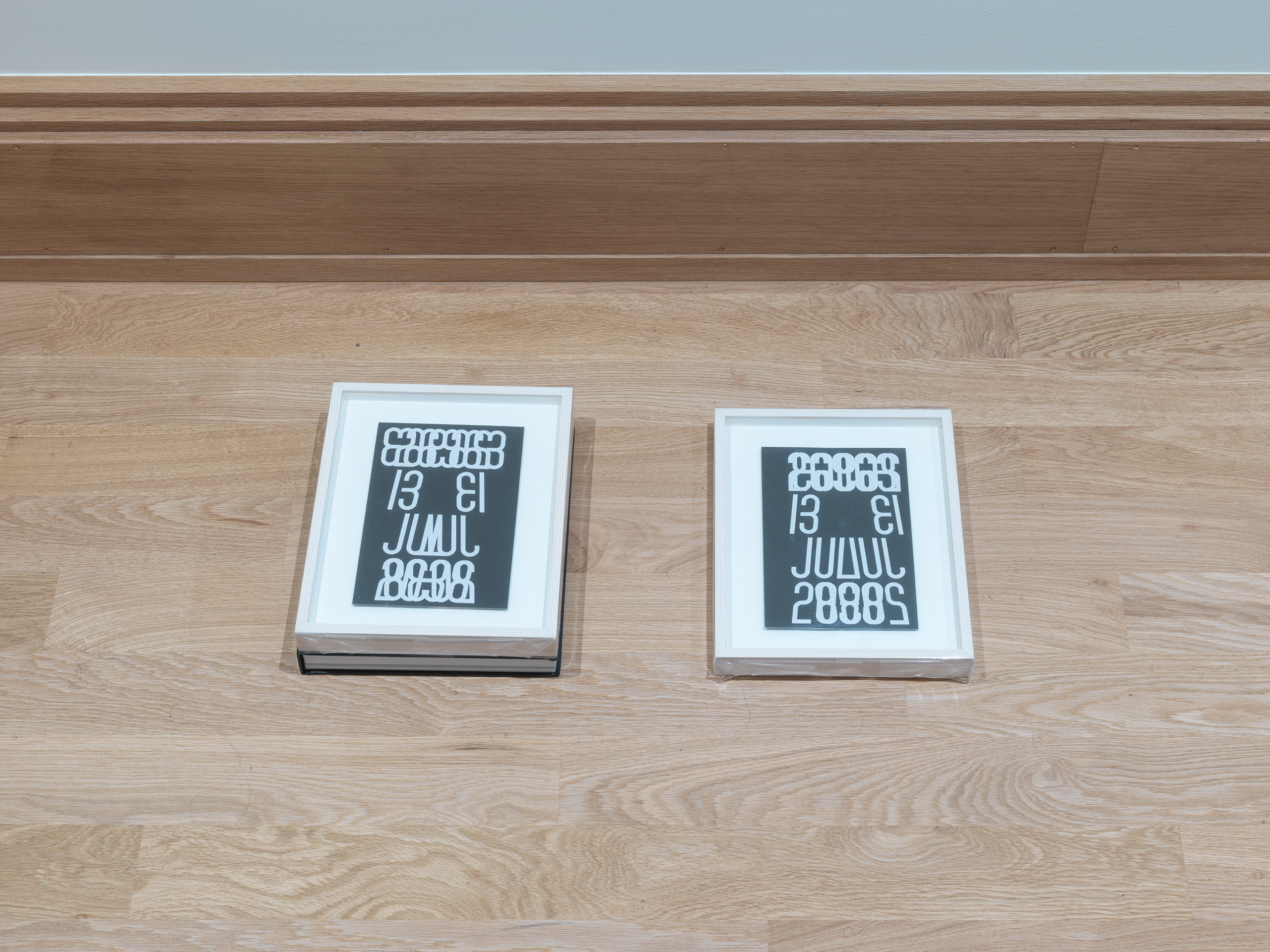 This exhibition moves within that same unsettled temporality: The Year 2025 Will Not Take Place. Several of Çerkez’s forward-dated works designate 2025 as the moment of their imagined remaking, binding the work to a future that is now our present—one saturated with continual forecasts of environmental collapse, geopolitical thresholds, astrological turns, technological ruptures. Time feels both tipped and perpetually imminent. This is, then, the centre of the chronology Çerkez’s practice inhabits: not anticipation or delay alone, nor a position outside them, but the interval where both collapse, a self-reflexive register in which the present is never quite stable. It may be this very instability that renders the work so contemporary—something that must be remarked precisely because it cannot be held. In this sense, Çerkez’s practice continually re-marks the impossibility of the present, allowing 2025 to become, again and again, the “now” of every moment.