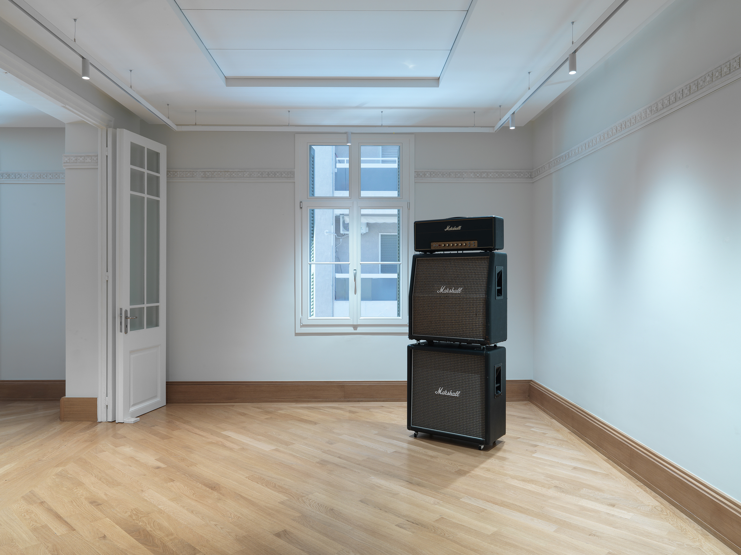 Act I–taking place on November 12, 2025–restages a performative gesture first presented in Mutlu Çerkez: selected works from an unwritten opera at the Kiasma Museum of Contemporary Art, Helsinki, in 2000. In that exhibition, Çerkez reworked material from the Notes and More notes for an unwritten opera series (1997–1999), transforming an earlier work—a mute Marshall stack, Untitled: 14 July 2030 (from Stage furniture / props for an unwritten opera, 1999), switched on but unplugged—into a live sculpture incorporating a Moog theremin, the same model used by Led Zeppelin’s Jimmy Page in Whole Lotta Love. It was a rare moment where Çerkez involved visitors, inviting them to contribute to his work by playing the instrument. Their improvised sounds were recorded and later released as a CD accompanying the exhibition catalogue. Following Çerkez’s conceptually underpinned score, the same gesture was repeated at the gallery in Athens in 2025–visitors activated the theremin again, their performances recorded and released on the gallery’s website. The act was both an homage and contribution to Çerkez’s practice, and a prelude to the exhibition that follows.